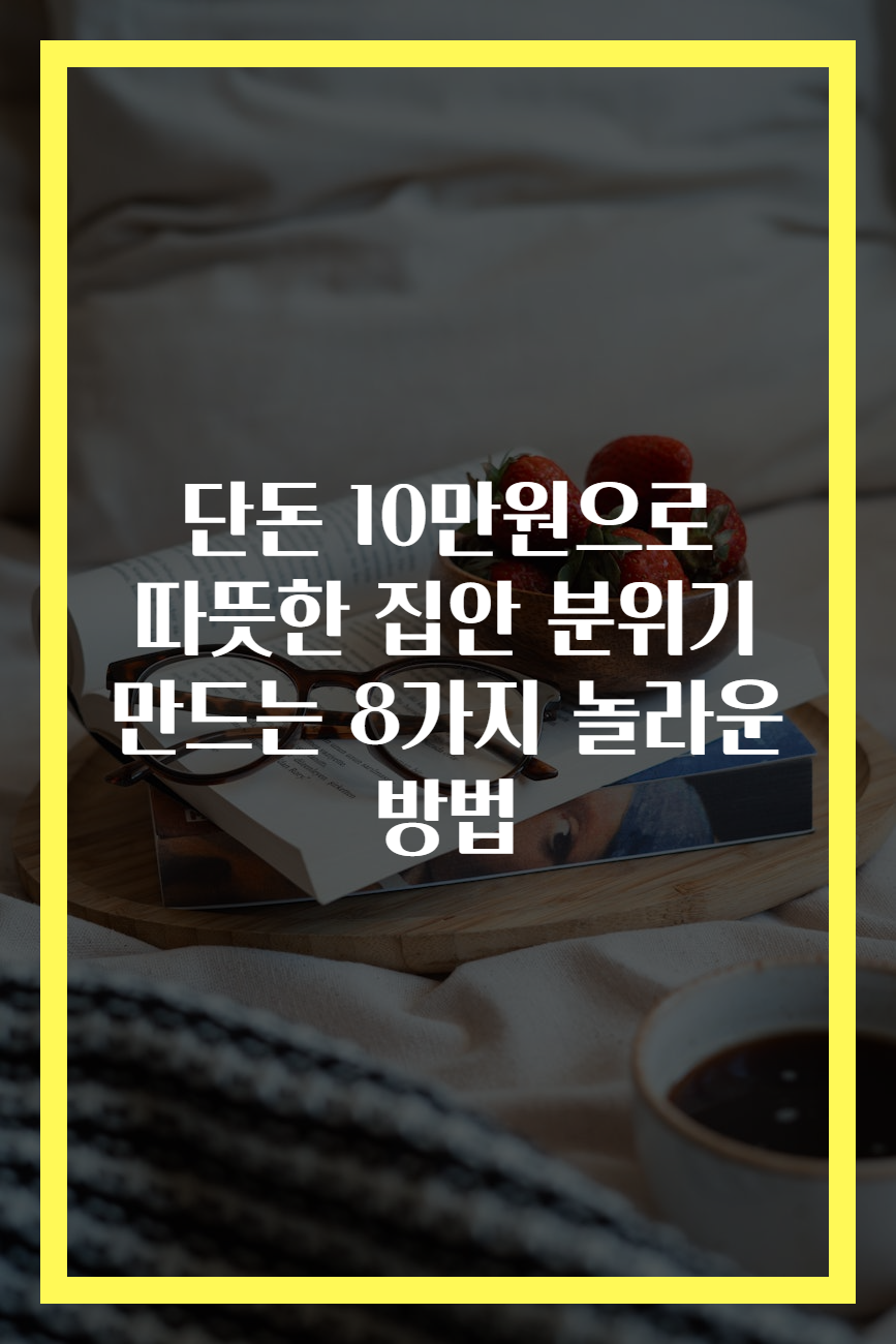 ์ง์์ ๋ถ์๊ธฐ๋ฅผ ๋ฐ๋ปํ๊ฒ ๋ง๋ค๊ธฐ ์ํด์๋ ๊ณ ๋น์ฉ์ ์ธํ ๋ฆฌ์ด๋ ๊ฐ์ ์ ํ์ ํ์ํ์ง ์์ผ๋ฉฐ, ์์ ๋ณํ๊ฐ ํฐ ํจ๊ณผ๋ฅผ ๊ฐ์ ธ์ฌ ์ ์์ต๋๋ค. ์์์ ์๊ฐํ 8๊ฐ์ง ๋ฐฉ๋ฒ์ ํตํด ์ ์ ์์ฐ์ผ๋ก ๊ณ ๊ธ์ค๋ฌ์ด ๋ถ์๊ธฐ๋ฅผ ์ฐ์ถํด๋ณด์ธ์. ์ ์ฐํ ์ฌ๊ณ ๋ฐฉ์๊ณผ ์์ ๋ณํ๋ค์ด ๋ชจ์ฌ ํน๋ณํ ์ง์ ๋ง๋ค ์ ์๋ ํ์ด ๋ฉ๋๋ค.